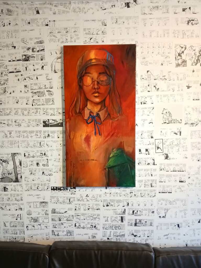 Cette peinture a trouvé sa place sur un superbe mur. Merci pour ta confiance 🙂